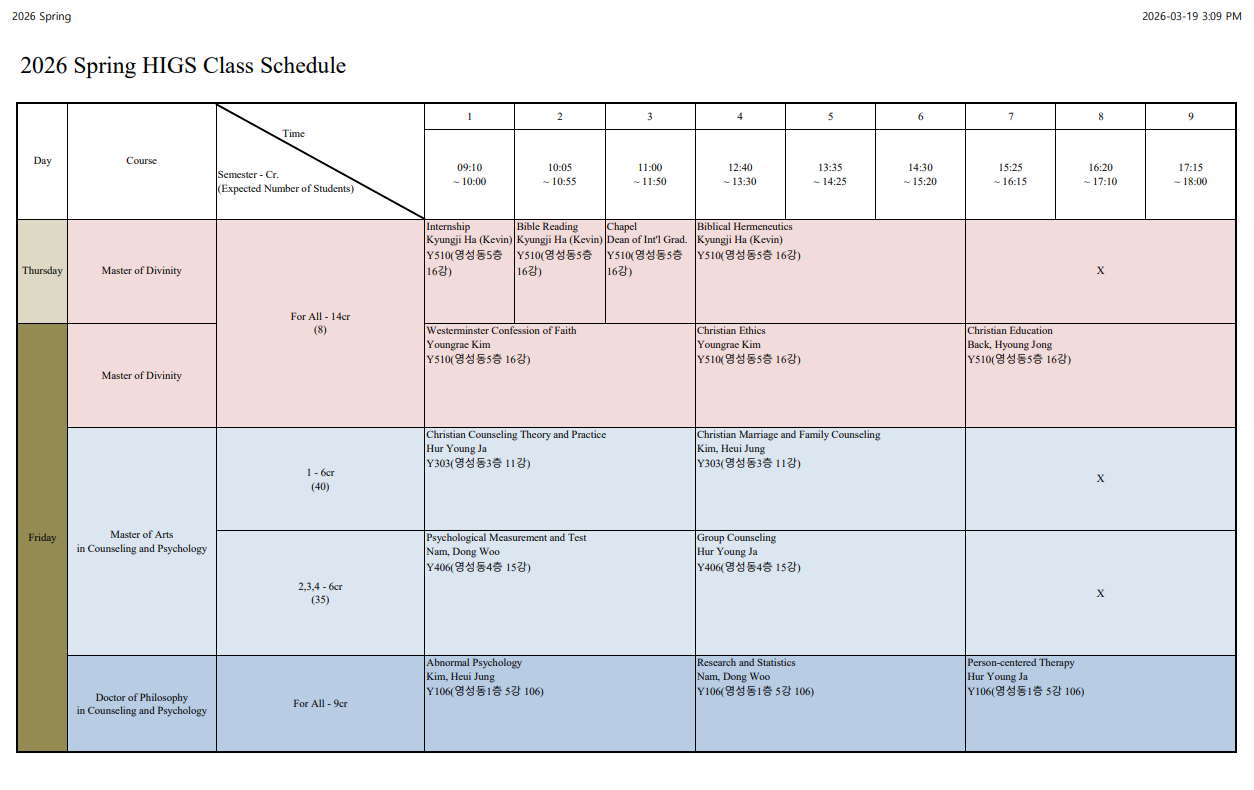 For 2nd, 3rd and 4th semester.Psychological Measurement and Test,Nam, Dong Woo /Group Counseling,Hur Young Ja,